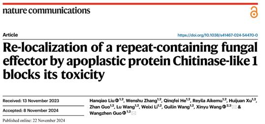 《Nature Communications》發(fā)表棉花遺傳育種團隊“Re-localization of a repeat-containing fungal effector by apoplastic protein Chitinase-like 1 blocks its toxicity”