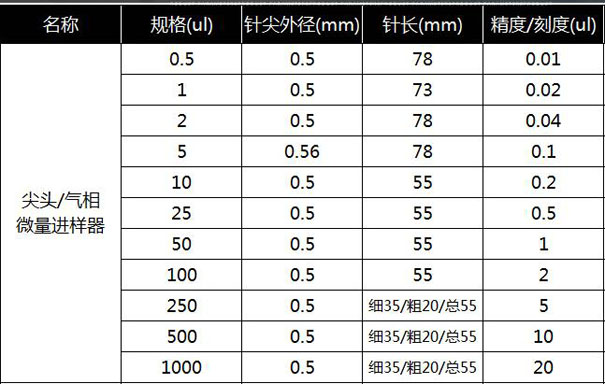 0.5 μl尖頭微量進樣器 貨號:JYQ-JT-05價格:80元