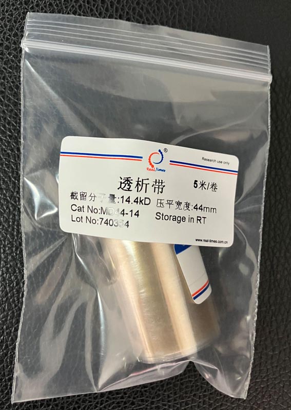 透析膜可用動物膜和玻璃紙等,但用的最多的還是用纖維素制成的透析膜,目前常用的是美國Union Carbide (聯(lián)合碳化物公司)和美國光譜醫(yī)學公司生產(chǎn)的各種尺寸的透析管,截留分子量MWCO(即留在透析袋內(nèi)的生物大分子的最小分子量)。截留分子量越大也就是說透過性越大。