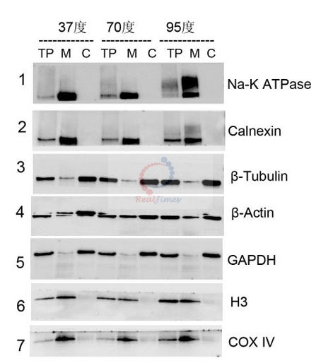 GAPDH [2] 和 β-tubulin [3],這是由于這些胞漿內(nèi)參不僅存在于胞漿也存在于質(zhì)膜中,因此可以在膜蛋白中檢測(cè)到胞漿內(nèi)參。更多信息,請(qǐng)參閱以下論文: