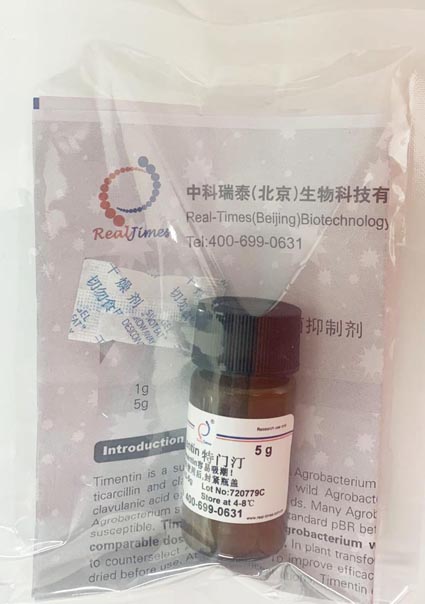 Potassium),按有效酸計(jì),替卡西林鈉與克拉維酸鉀的配比為15:1,替卡西林是青霉素類殺菌試劑,而克拉維酸則是一種不可逆性高效β-內(nèi)酰胺酶抑制劑。多種革蘭氏陽性菌(G+)和陰性菌(G-)都能產(chǎn)生β-內(nèi)酰胺酶,這類酶能在青霉素作用于病原體之前將其破壞??死S酸通過阻斷β-內(nèi)酰胺酶破壞細(xì)菌的防御屏障,恢復(fù)替卡西林敏感性??死S酸鉀單獨(dú)抗菌作用甚微,但與替卡西林配置后使本品成為具有廣譜殺菌作用的抗生素,適用于對廣泛的細(xì)菌感染性疾病的經(jīng)驗(yàn)治療。在科研中常用于抑制農(nóng)桿菌生長,特別在胚性愈傷組織再生系統(tǒng)中,能達(dá)到很好的抑菌和再生效果。