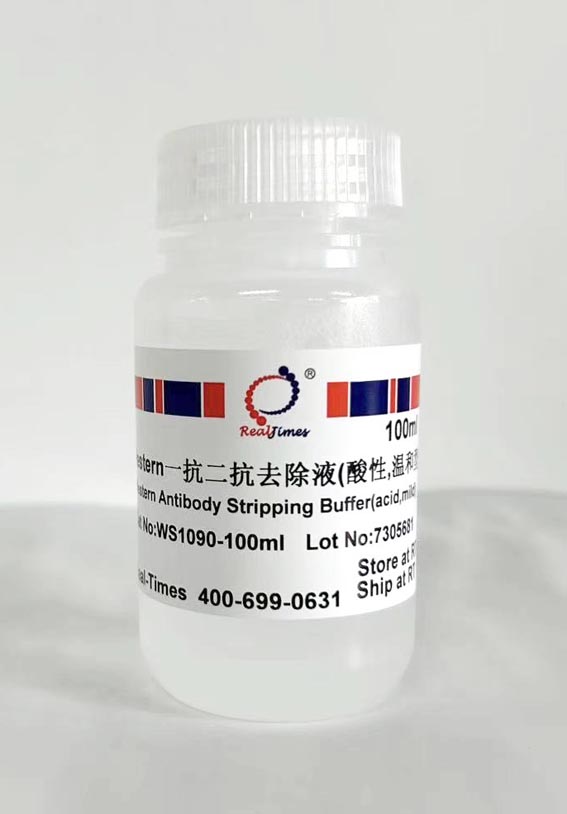 Western一抗二抗去除液(酸性,溫和型)(Western Antibody Stripping Buffer,acid,mild type)可以高效去除印跡膜上的一抗和二抗,而吸附在膜上的抗原基本不受影響,用于Western中轉移了蛋白膜的重復利用,可以轉一次膜,做多次Western印跡實驗,通??梢灾貜屠媚?-8次(PVDF膜)。使用本試劑只需大約20-30分鐘即可實現(xiàn)蛋白膜的重復使用,然后可以進行Western的后續(xù)操作。